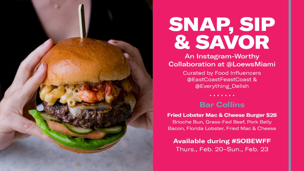 For the 2020 South Beach Wine & Food Festival, I programmed a culinary collaboration with national food influencers @EastCoastFeastCoast & @Everything_Delish. In partnership with Loews Miami Beach Hotel’s chefs, the influencer duo curated Instagram-worthy menu items at each of the resort’s restaurants, available for a limited time during SOBEWFF weekend. “Snap, Sip & Savor” generated compelling social media conversation from a range of local and national influencers, festival attendees, foodies, and chefs.